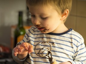 Luke licking the spoon.