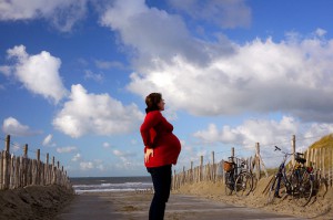 The author, 8 months pregnant. Picture taken along the North Sea in the beachside town of Scheveningen. By Friedel on May 7, 2013 in